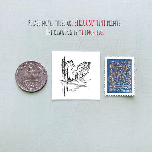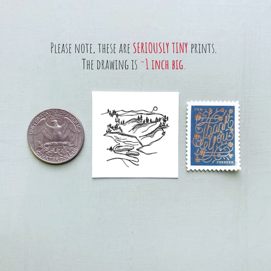 Mini Salt Lake City, Utah 1.5" Watercolor and Ink Art PRINT