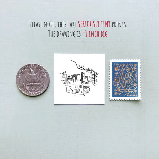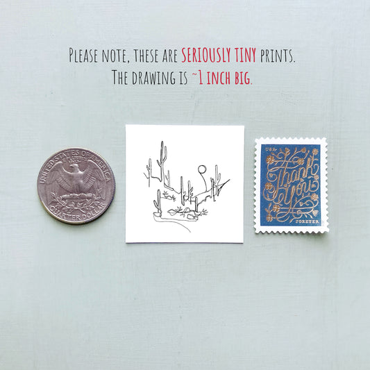 Mini Phoenix, Arizona 1.5" Watercolor and Ink Art PRINT
