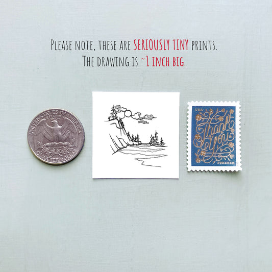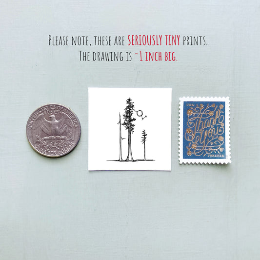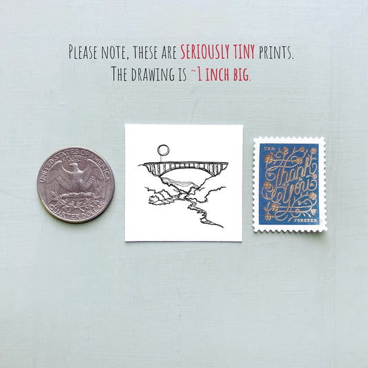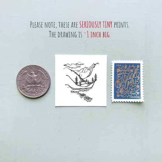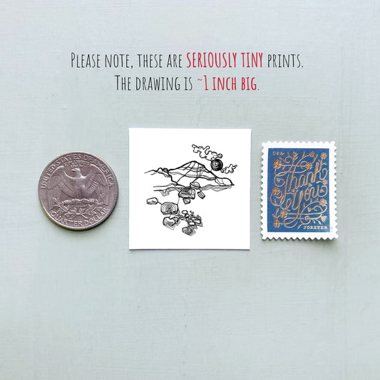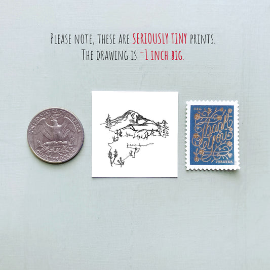 Mini Portland, Oregon 1.5" Watercolor and Ink Art PRINT