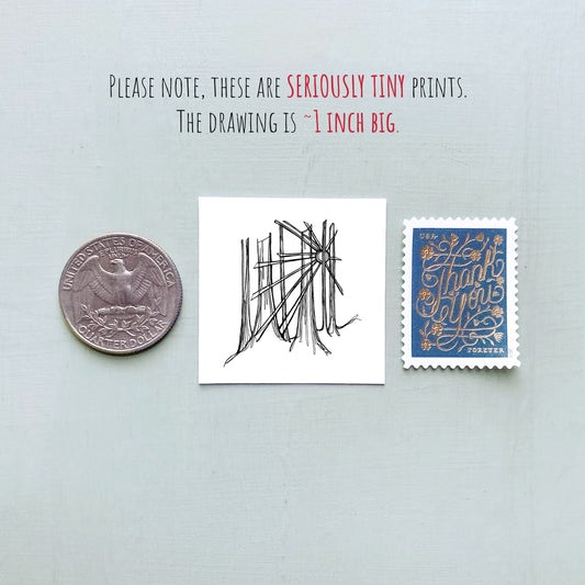 Mini Seattle, Washington 1.5" Watercolor and Ink Art PRINT