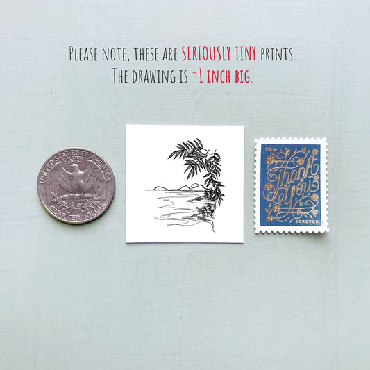 Mini Miami, Florida 1.5" Watercolor and Ink Art PRINT