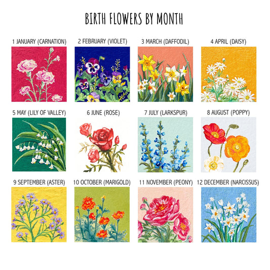 Mini 1" Birth Flowers Gouache Art PRINTS