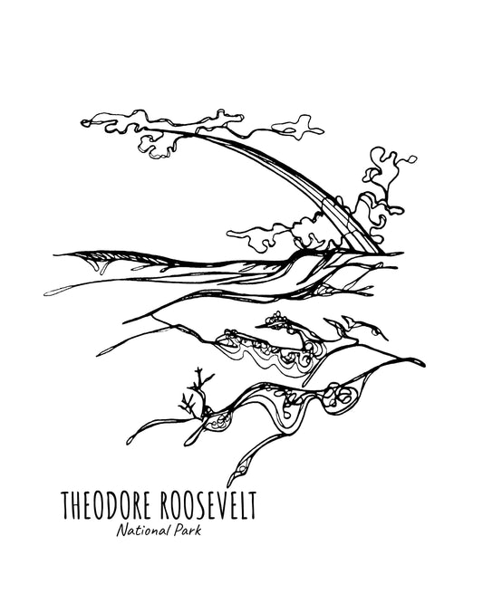 Theodore Roosevelt National Park, North Dakota Continuous Line Print