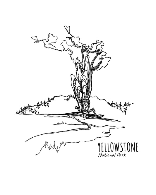 Yellowstone National Park, Wyoming Montana Idaho Continuous Line Print