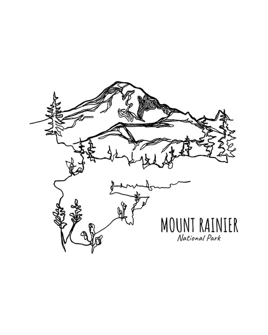 Mount Rainier National Park, Washington Continuous Line Print