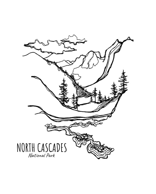North Cascades National Park, Washington Continuous Line Print