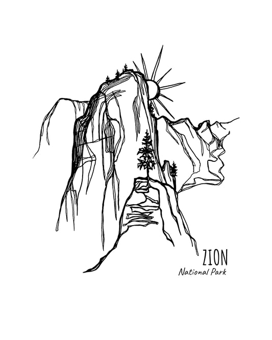 Zion National Park, Utah Continuous Line Print