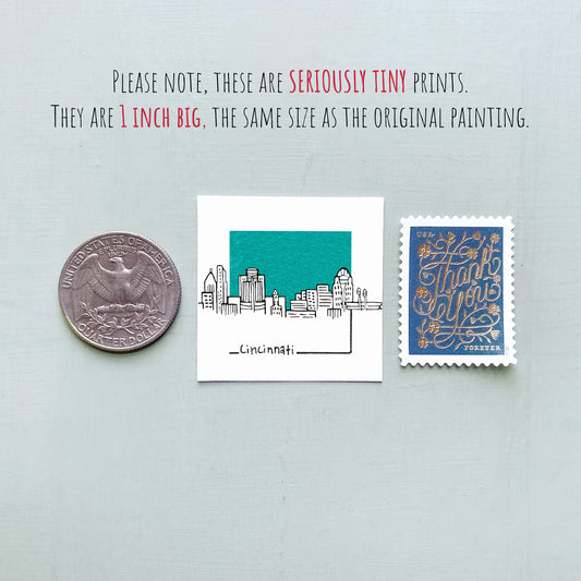 Mini Cincinnati, Ohio 1.5" Watercolor and Ink Art PRINT