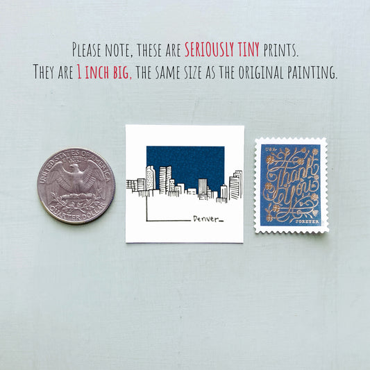 Mini Denver, Colorado 1.5" Watercolor and Ink Art PRINT