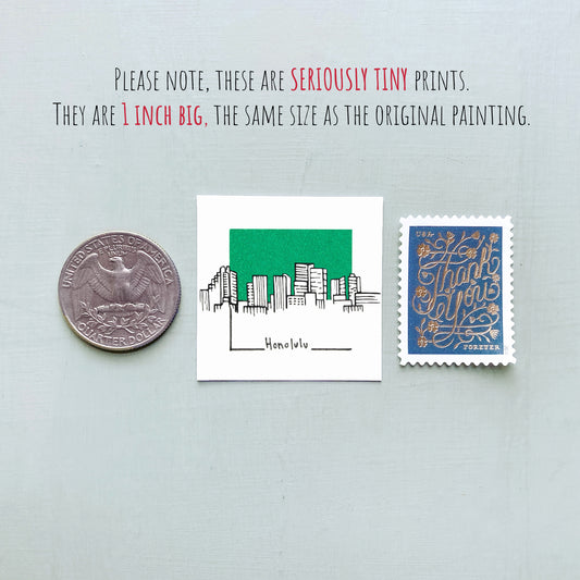 Mini Honolulu, Hawaii 1.5" Watercolor and Ink Art PRINT