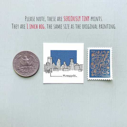 Mini Minneapolis, Minnesota 1.5" Watercolor and Ink Art PRINT