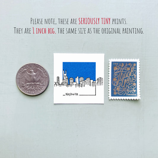 Mini Nashville, Tennessee 1.5" USA City Skyline Tiny Watercolor and Ink Art PRINT