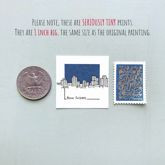 Mini New Orleans, Louisiana 1.5" Watercolor and Ink Art PRINT