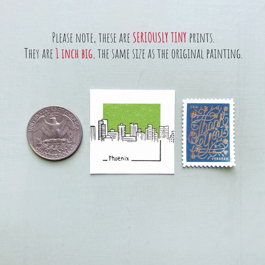 Mini Phoenix, Arizona 1.5" Watercolor and Ink Art PRINT