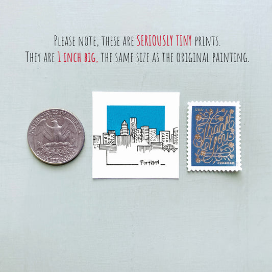 Mini Portland, Oregon 1.5" Watercolor and Ink Art PRINT