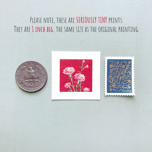 Miniature Carnation January Birth Flower Art PRINT - Tiny 1-Inch Mini Wall Decor