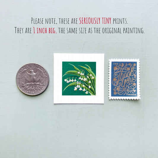 Miniature Lily of the Valley May Birth Flower Art PRINT - Tiny 1-Inch Mini Wall Decor