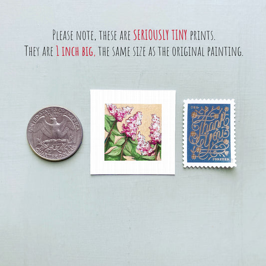 Miniature Lilacs Flower Art PRINT - Tiny 1-Inch Mini Wall Decor