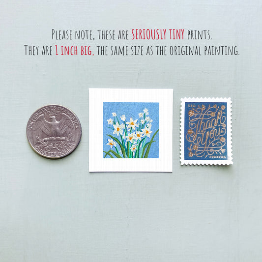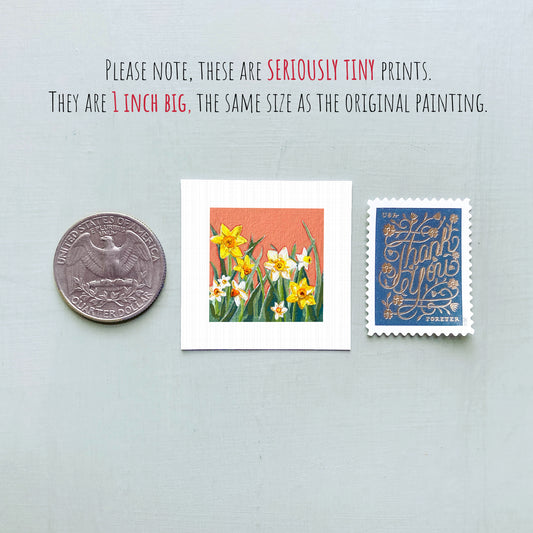 Miniature Daffodils March Birth Flower Art PRINT - Tiny 1-Inch Mini Wall Decor