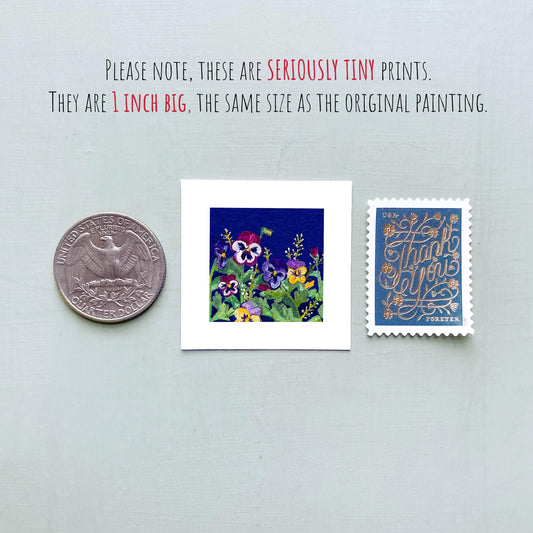 Mini 1" Violet Pansies February Birth Flower Art PRINT