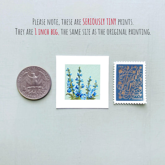 Mini 1" Larkspur Delphinium July Birth Flower Art PRINT