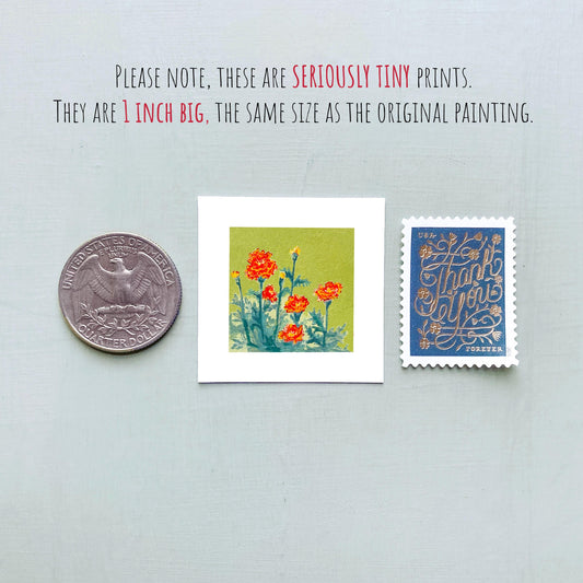 Mini 1" Marigolds October Birth Flower Art PRINT