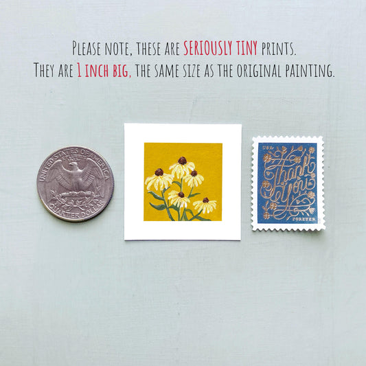Mini 1" Coneflowers Black Eyed Susan Flower Art PRINT