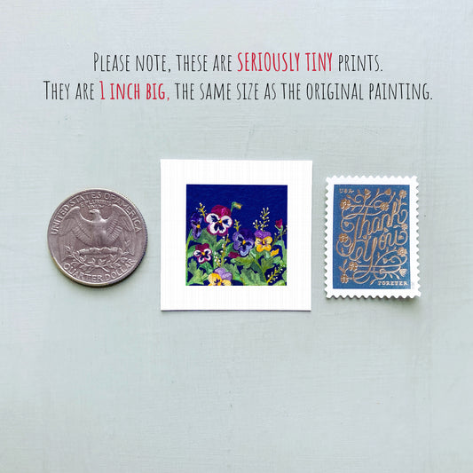 Miniature Violet Pansies February Birth Flower Art PRINT - Tiny 1-Inch Mini Wall Decor
