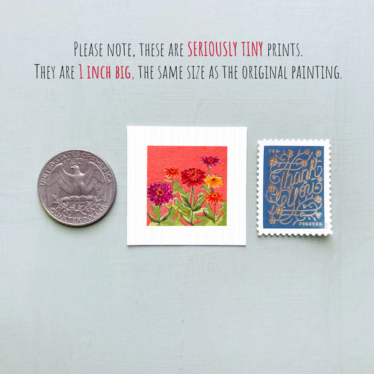 Miniature Zinnias Flower Art PRINT - Tiny 1-Inch Mini Wall Decor
