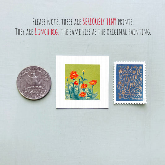 Miniature Marigolds October Birth Flower Art PRINT - Tiny 1-Inch Mini Wall Decor