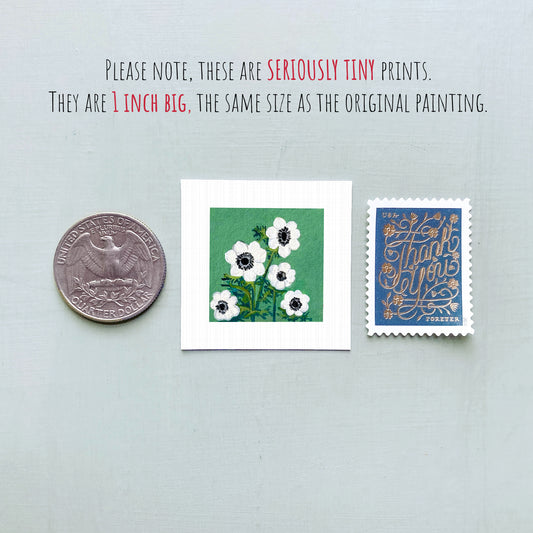 Miniature Anemones Flower Art PRINT - Tiny 1-Inch Mini Wall Decor