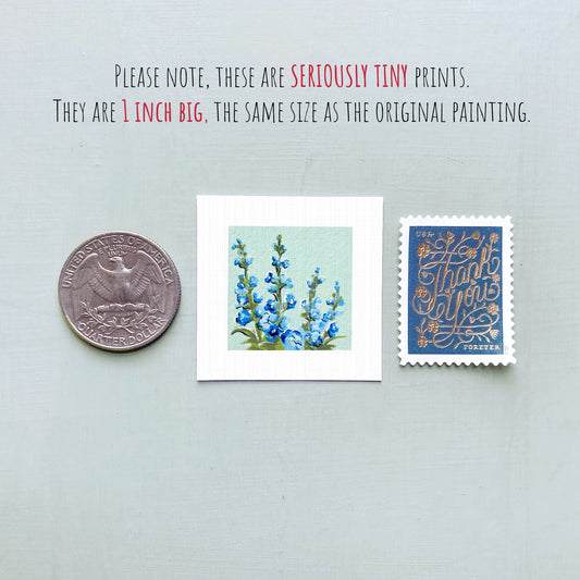 Miniature Larkspur Delphinium July Birth Flower Art PRINT - Tiny 1-Inch Mini Wall Decor