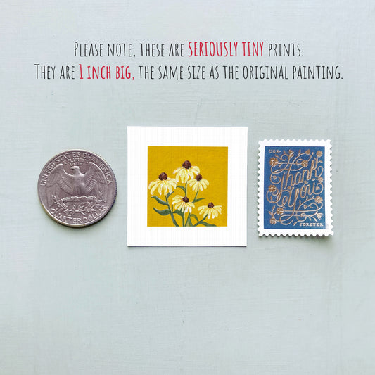 Miniature Coneflowers Black Eyed Susan Flower Art PRINT - Tiny 1-Inch Mini Wall Decor
