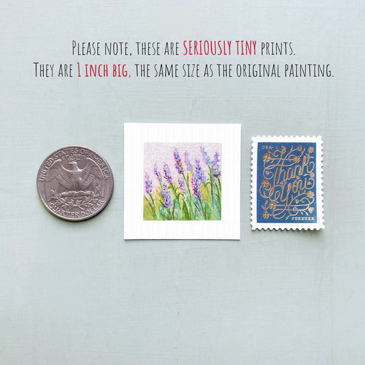 Miniature Lavender Flower Art PRINT - Tiny 1-Inch Mini Wall Decor
