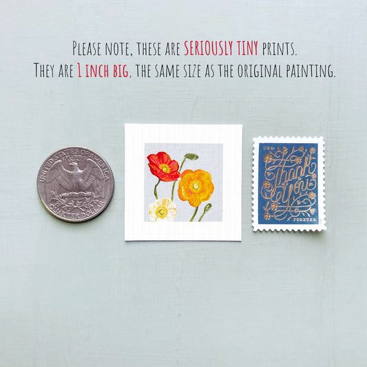 Miniature Poppies August Flower Art PRINT - Tiny 1-Inch Mini Wall Decor