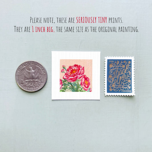Miniature Peony November Birth Flower Art PRINT - Tiny 1-Inch Mini Wall Decor