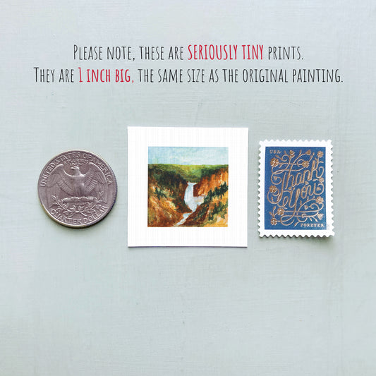 Miniature WY Yellowstone Falls Waterfall Art PRINT - Tiny 1-Inch Mini Wall Decor