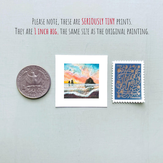 Mini 1" OR Cannon Beach Oregon Coast USA Roadtrip Tiny Gouache Art PRINT