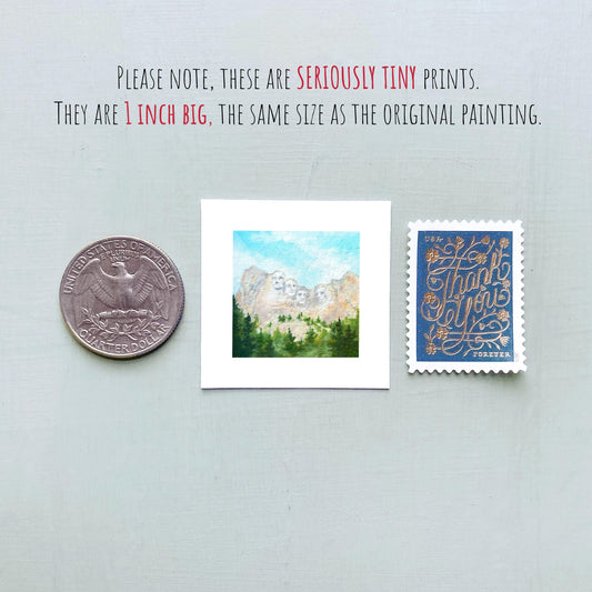 Mini 1" SD Mount Rushmore South Dakota USA Roadtrip Tiny Gouache Art PRINT