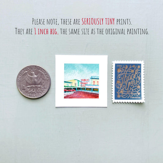 Mini 1" WA Pike Place Market Seattle WA USA Roadtrip Tiny Gouache Art PRINT