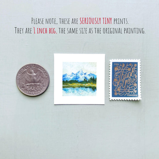 Mini 1" WY Grand Tetons National Park Wyoming USA Roadtrip Tiny Gouache Art PRINT