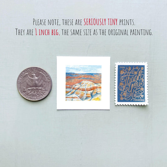 Mini 1" SD Badlands National Park South Dakota USA Roadtrip Tiny Gouache Art PRINT