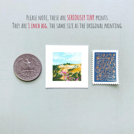 Mini 1" CA Hollywood California USA Roadtrip Tiny Gouache Art PRINT