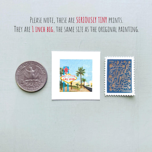 Mini 1" NV Las Vegas Nevada USA Roadtrip Tiny Gouache Art PRINT