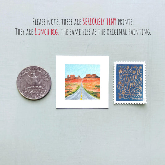Mini 1" UT Monument Valley Road Utah USA Roadtrip Tiny Gouache Art PRINT