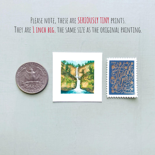 Mini 1" OR Multnomah Falls Oregon USA Roadtrip Tiny Gouache Art PRINT