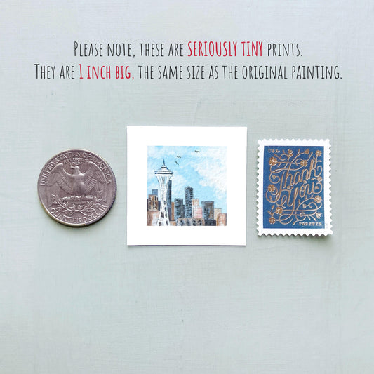 Mini 1" WA Space Needle Seattle Washington USA Roadtrip Tiny Gouache Art PRINT