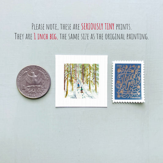 Mini 1" Snowshoeing Watercolor Print