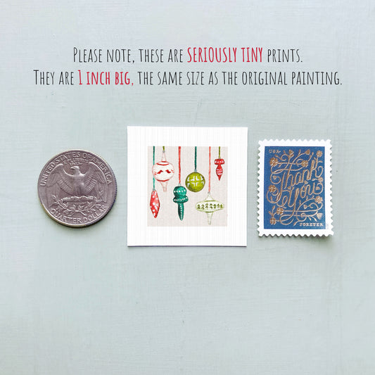Miniature Christmas Ornaments Art PRINT - Tiny 1-Inch Mini Wall Decor