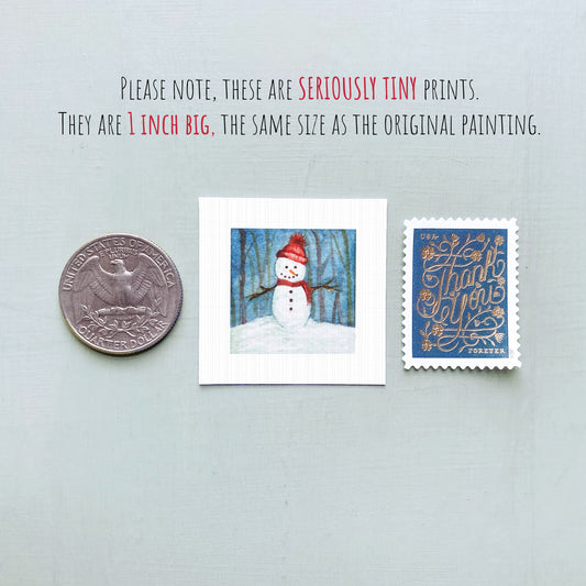 Miniature Snowman Art PRINT - Tiny 1-Inch Mini Wall Decor